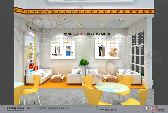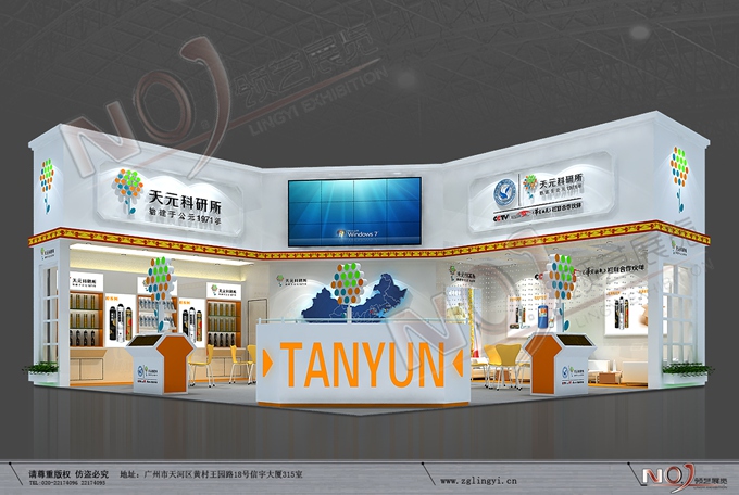 契合天元的品牌形象和產(chǎn)品特性,采用矩形結(jié)構(gòu),再搭配燈具燈光的效果,襯托出展位高端、時(shí)尚的氛圍,突出一種現(xiàn)代、大氣的時(shí)尚品味。