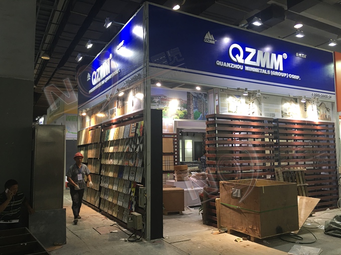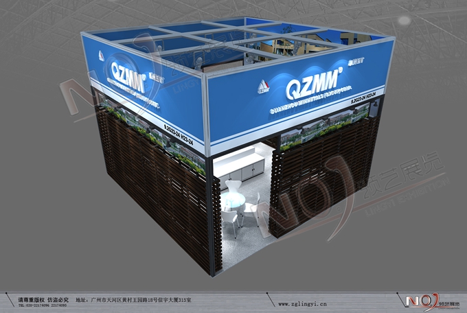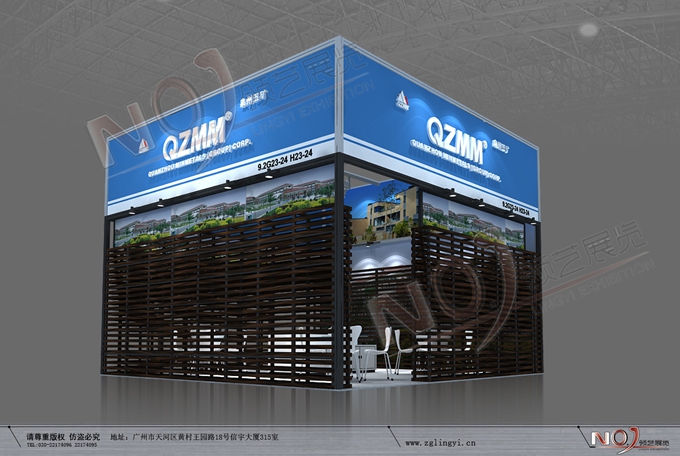 契合泉州五礦集團的品牌形象和產(chǎn)品特性,采用矩形結(jié)構(gòu),再搭配燈具燈光的效果,襯托出展位高端、時尚的氛圍,突出一種現(xiàn)代、大氣的時尚品味。