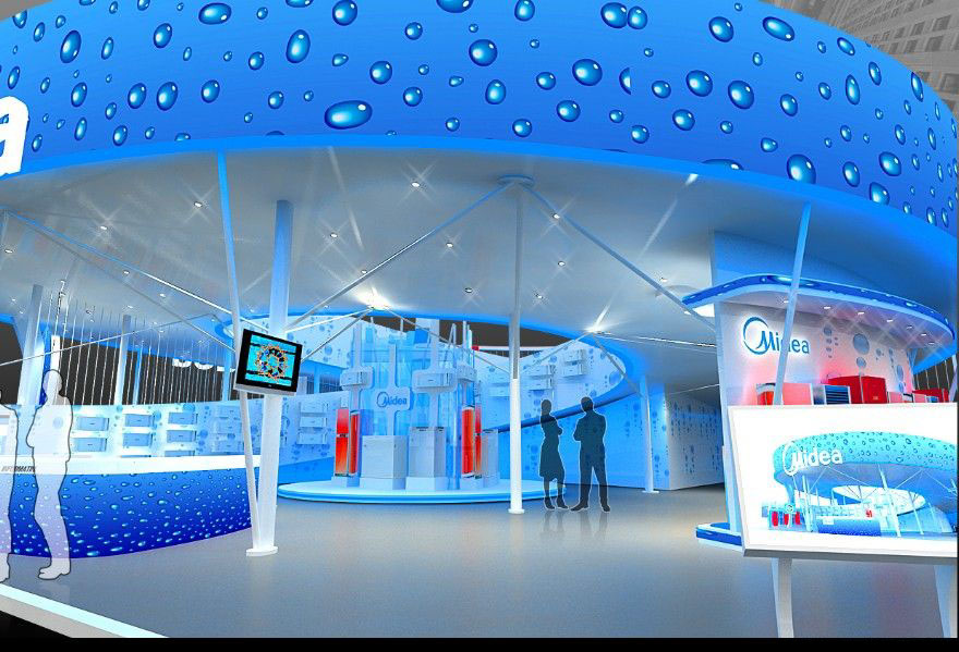 契合美的的品牌形象和產(chǎn)品特性,采用矩形結構,再搭配燈具燈光的效果,襯托出展位高端、時尚的氛圍,突出一種現(xiàn)代、大氣的時尚品味。