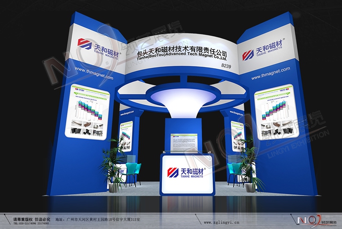 契合天和磁材的品牌形象和產(chǎn)品特性,采用曲線、框型結(jié)構(gòu),再搭配燈具燈光的效果,襯托出展位簡約、舒適的氛圍,突出一種躍動、簡約的時尚品味。