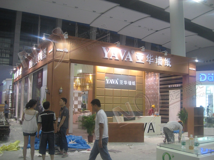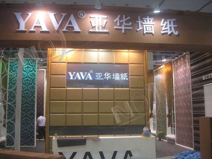 契合亞華墻紙的品牌形象和產(chǎn)品特性,采用矩形結(jié)構(gòu),再搭配燈具燈光的效果,襯托出展位時(shí)尚、典雅的氛圍,突出一種大氣、高端的時(shí)尚品味。