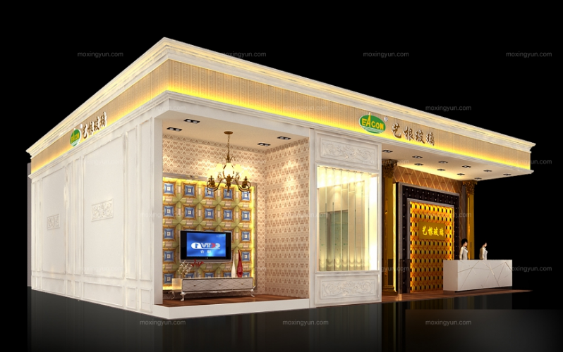 契合藝根玻璃的品牌形象和產(chǎn)品特性,采用線條、結(jié)構(gòu),再搭配燈具燈光的效果,襯托出展位簡(jiǎn)約、時(shí)尚的氛圍,突出一種現(xiàn)代、高端的品味。
