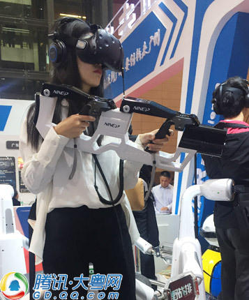 昨天(12月21日)和今天兩天,2016中國海外人才交流大會暨第18屆中國留學人員廣州科技交流會(以下簡稱2016海交會)在廣州白云國際會議中心開幕。觀眾們一進主會場,就看到廣州玖的數碼公司的“野戰(zhàn)排”VR展臺前擠滿了年輕人,等著免費體驗一把“持槍掃射”的刺激。