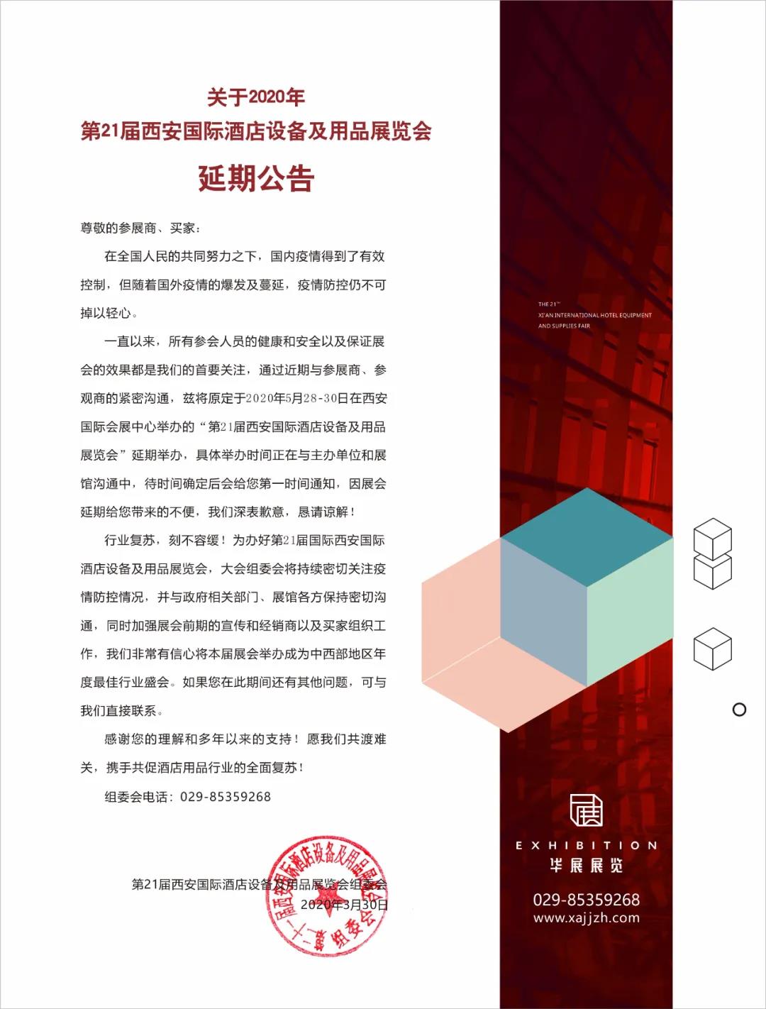 根據(jù)酒店用品展設(shè)計(jì)搭建公司領(lǐng)藝展覽了解到,2020年西安國(guó)際酒店用品展將延期舉辦。如需酒店用品展設(shè)計(jì)請(qǐng)聯(lián)系領(lǐng)藝展覽,希望我們能在酒店用品展搭建上為您添磚加瓦,祝各位朋友收獲多多,滿載而歸!