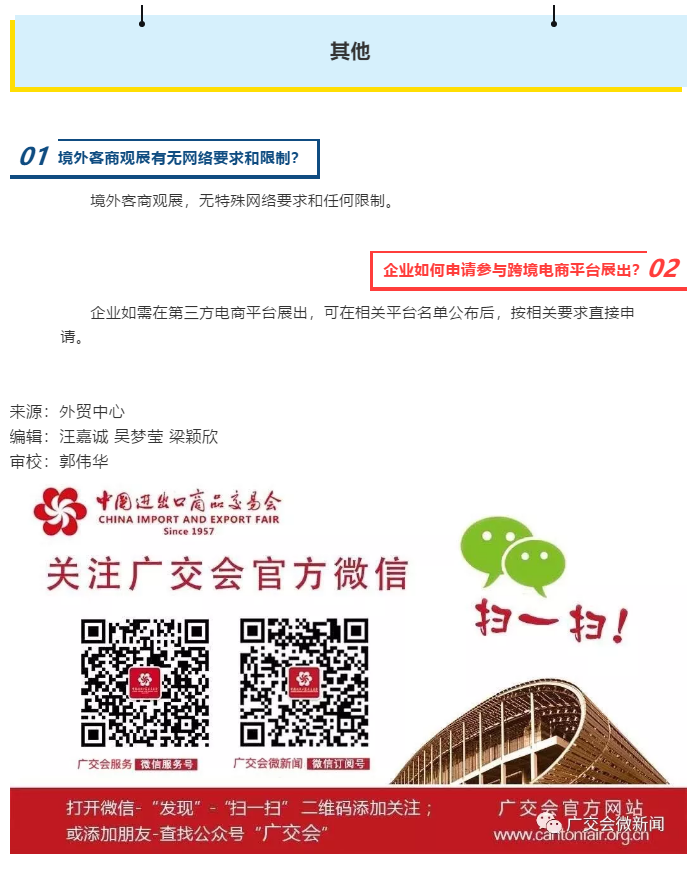 根據(jù)廣交會線上展廳設(shè)計公司領(lǐng)藝展覽了解到,萬眾矚目的第127屆廣交會,將于6月15-24日在網(wǎng)上舉辦。本屆廣交會如何舉辦,參展企業(yè)如何“云展示”及“云營銷”,都是大家關(guān)心的熱點問題。為做好廣交會在網(wǎng)上舉辦的參展指引工作,及時讓企業(yè)了解和配合相關(guān)組織工作,大會將視工作進(jìn)展,分多次發(fā)布參展指引?,F(xiàn)公布指引之三,敬請關(guān)注!如需廣交會線上展廳設(shè)計請聯(lián)系領(lǐng)藝展覽,希望我們能在廣交會搭建上為您添磚加瓦,祝各位朋友收獲多多,滿載而歸!
