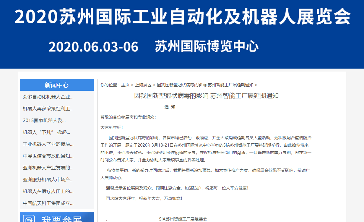 根據(jù)蘇州展臺(tái)設(shè)計(jì)搭建公司領(lǐng)藝展覽了解到,因我國新型冠狀病毒的影響,各省市均已啟動(dòng)一級(jí)響應(yīng),并全面取消或延期各類大型活動(dòng)。為積極配合疫情防治工作的開展,原定于2020年3月18-21日在蘇州國際博覽中心舉辦的SIA蘇州智能工廠展將延期舉行,如需蘇州展臺(tái)設(shè)計(jì)請聯(lián)系領(lǐng)藝展覽,希望我們能在蘇州展臺(tái)搭建上為您添磚加瓦,祝各位朋友收獲多多,滿載而歸!