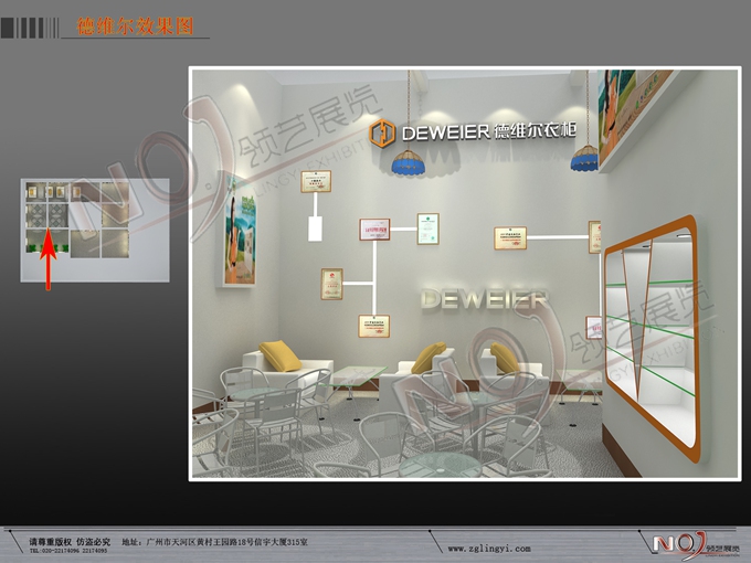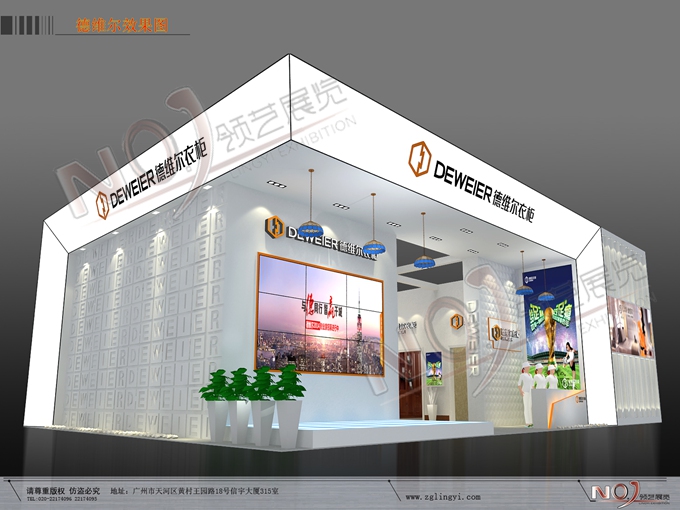 契合德維爾的品牌形象和產(chǎn)品特性,采用框型結(jié)構(gòu),再搭配燈具燈光的效果,襯托出展位時尚、簡約的氛圍,突出一種融合、個性的時尚品味。
