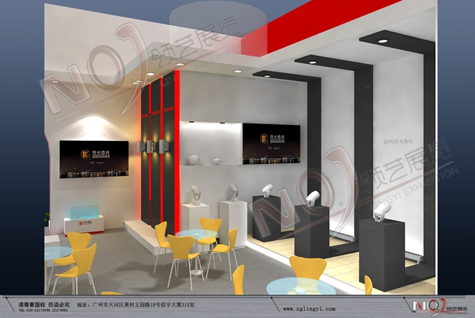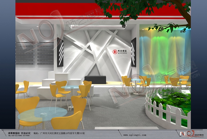 契合奇光的品牌形象和產(chǎn)品特性,采用矩形結(jié)構(gòu),再搭配燈具燈光的效果,襯托出展位時(shí)尚、簡約的氛圍,突出一種現(xiàn)代、活力的時(shí)尚品味。